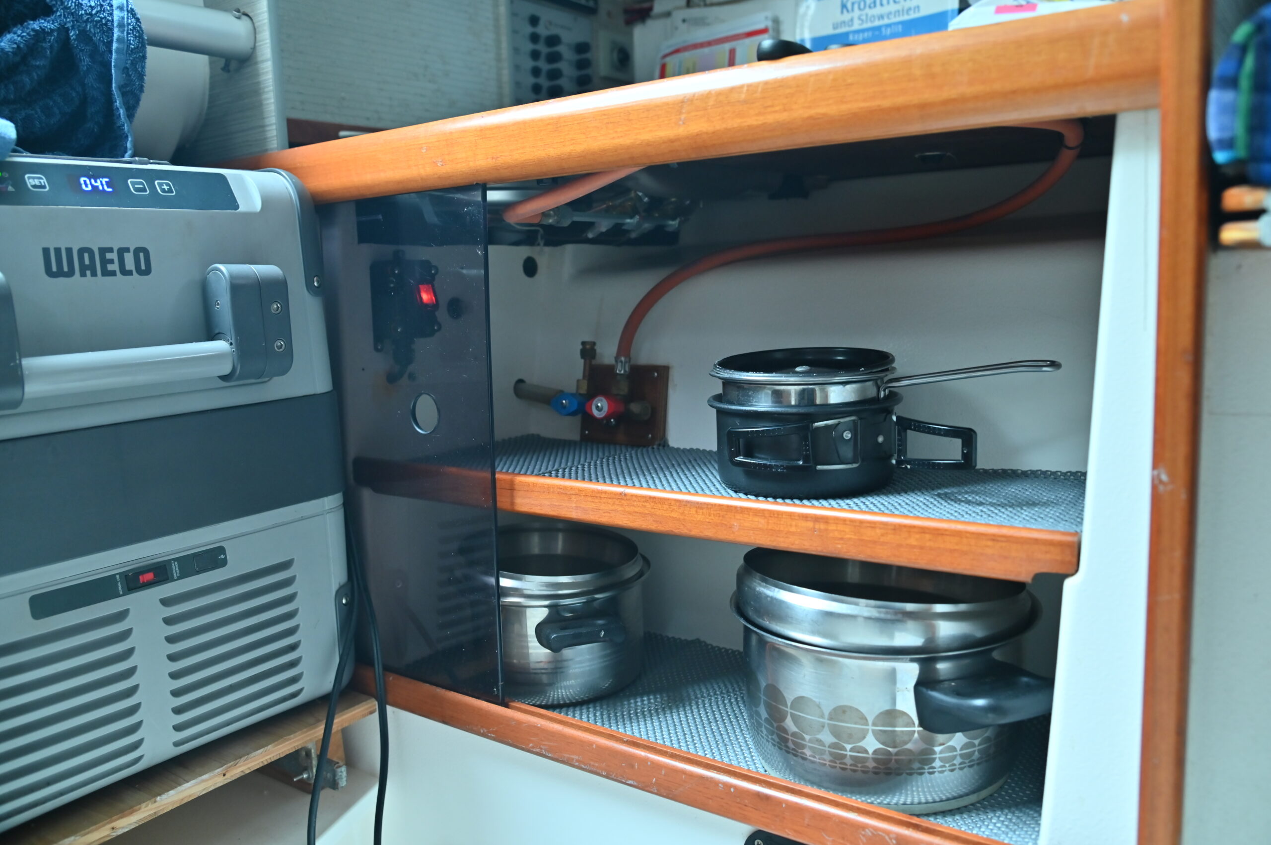 - Outlets and connection for Trumatic E 2400 gas heater in main cabin
